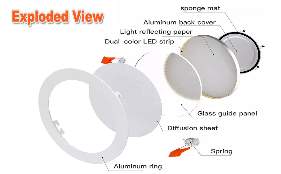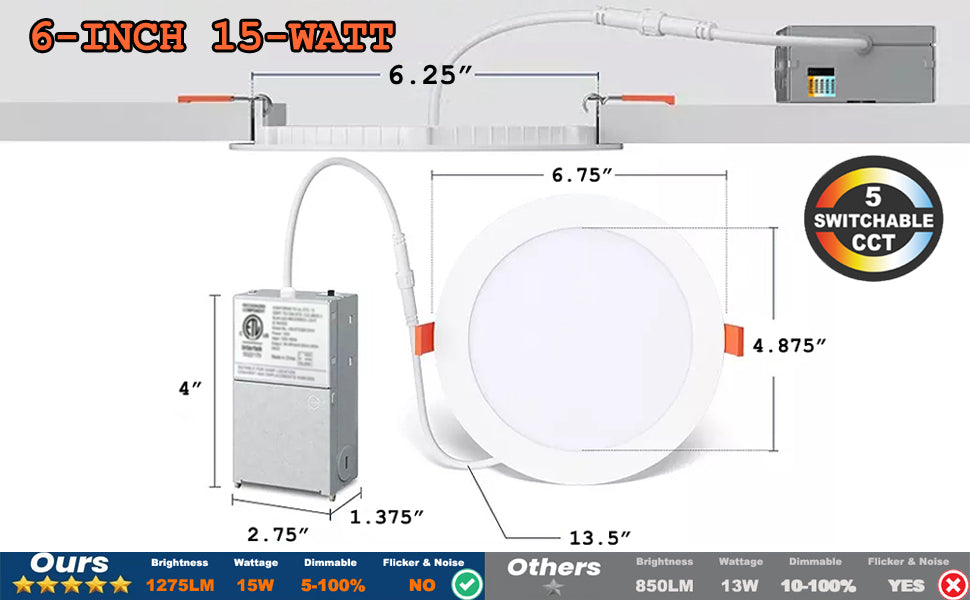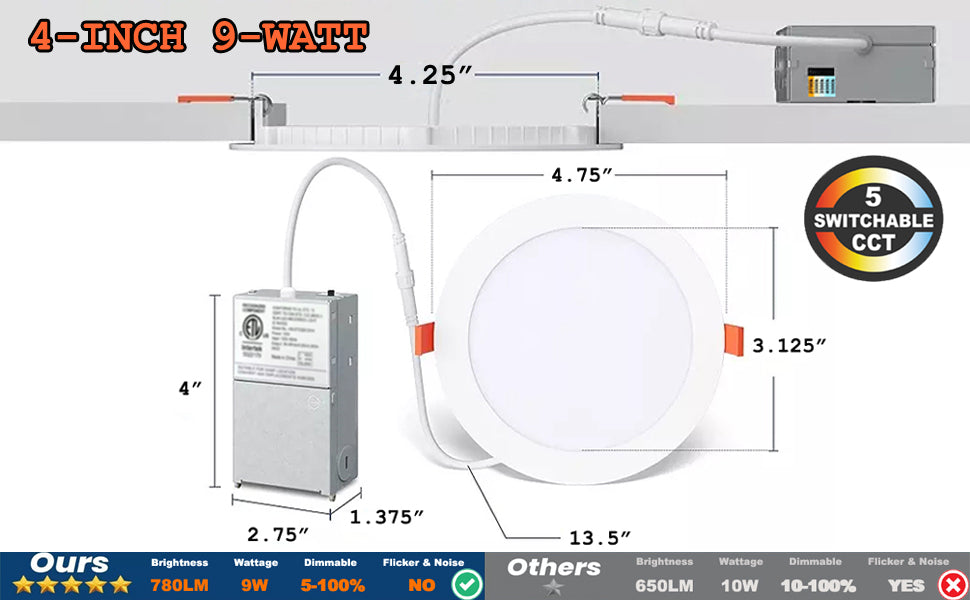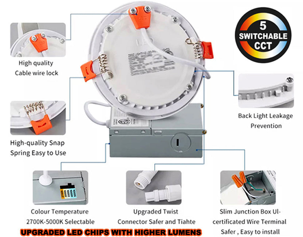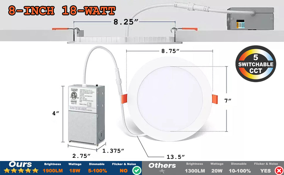 Canless LED Recessed Lights | Recessed Lighting 6-Inch | 4-Inch LED Can Light | 8-Inch LED Ceiling Light Fixture | 5CCT LED Recessed Panel Light - ETL Certified